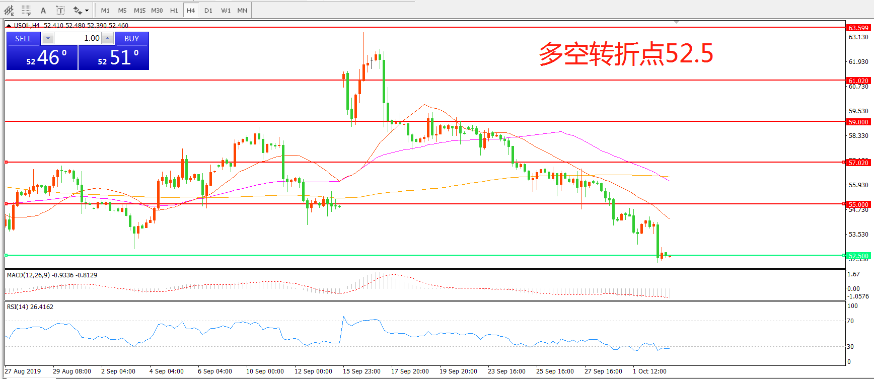 交易策略: 在52.50之下看跌,目标50.00 48.00