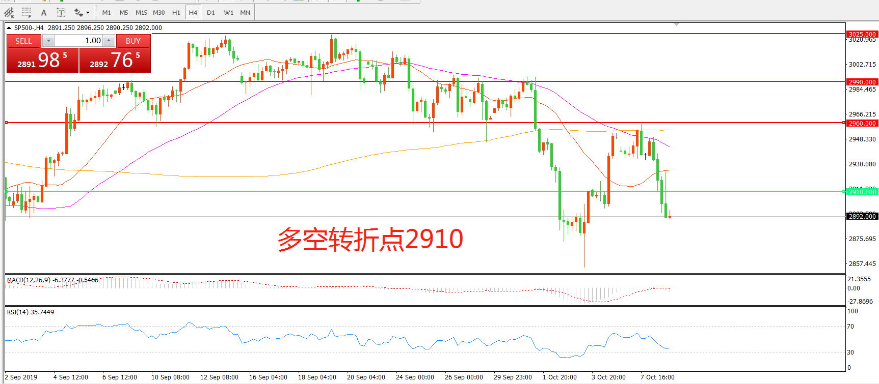 周二(10月8日)美联储主席鲍威尔在丹佛举行的美国全国商业经济学协会年会上讲话声称美国经济扩张能持续下去,但仍面临风险,同时美国9月PPI创8个月来最大跌幅,标普500上演“高台跳水”,大跌1.56%,收报2893.98点。科技股集体下跌,高通收跌4.6%,西部数据收跌4.3%,中概股多数收跌,市场现在重点关注国际贸易局势的进展与经济数据。