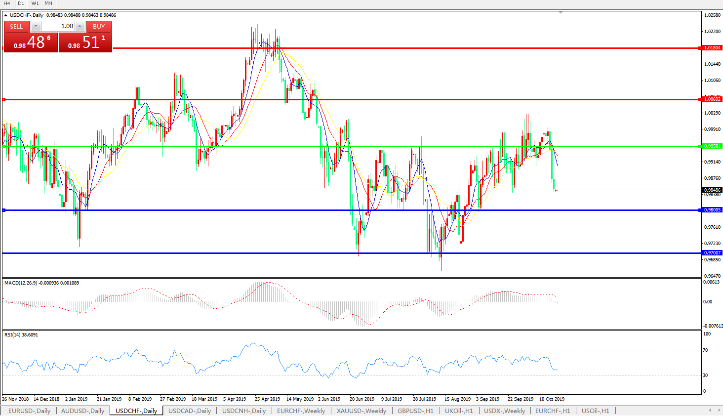 交易策略:0.9950下方看跌,目标0.98000.9700