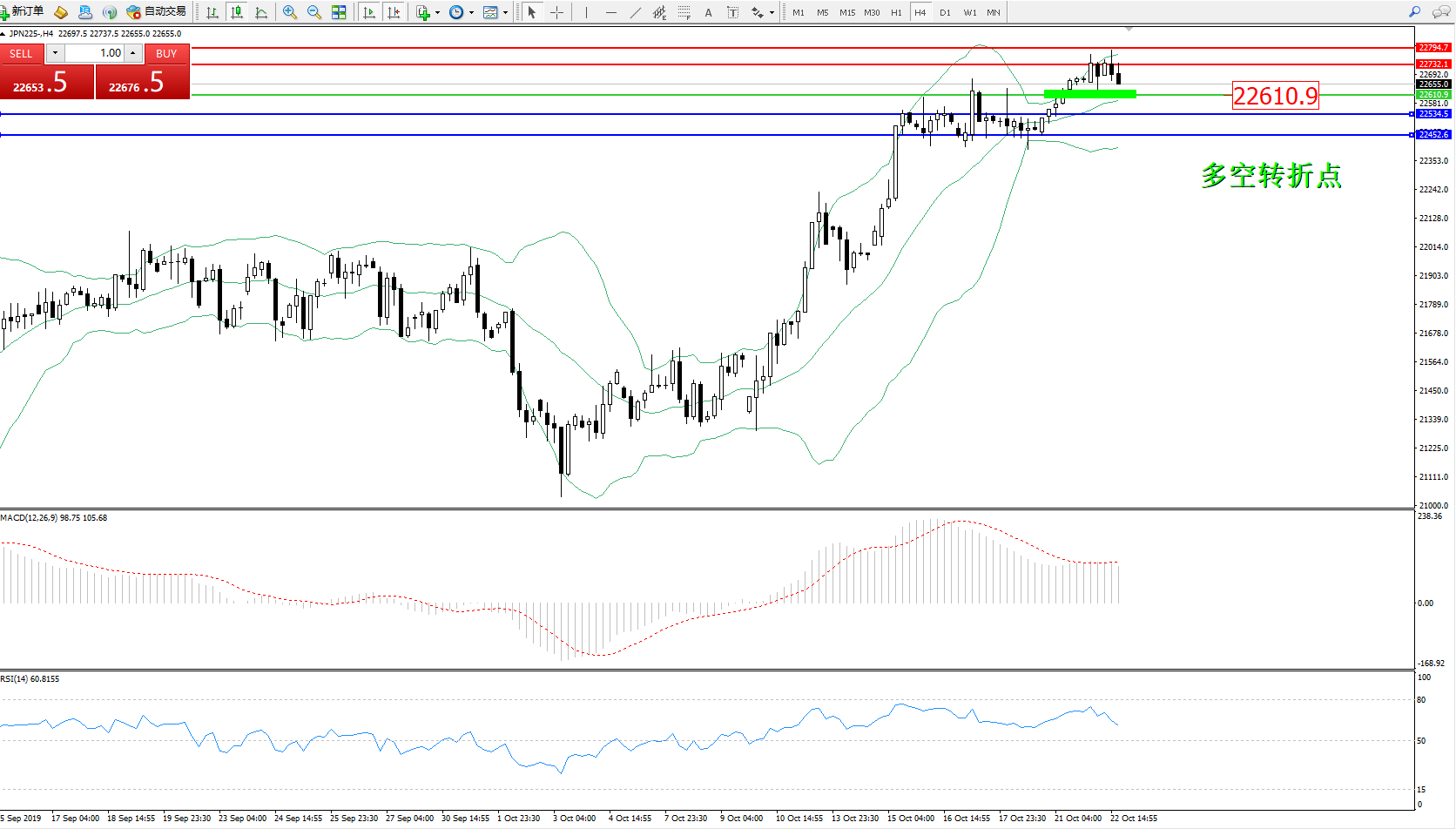 日经指数JPN225——4小时K线图: