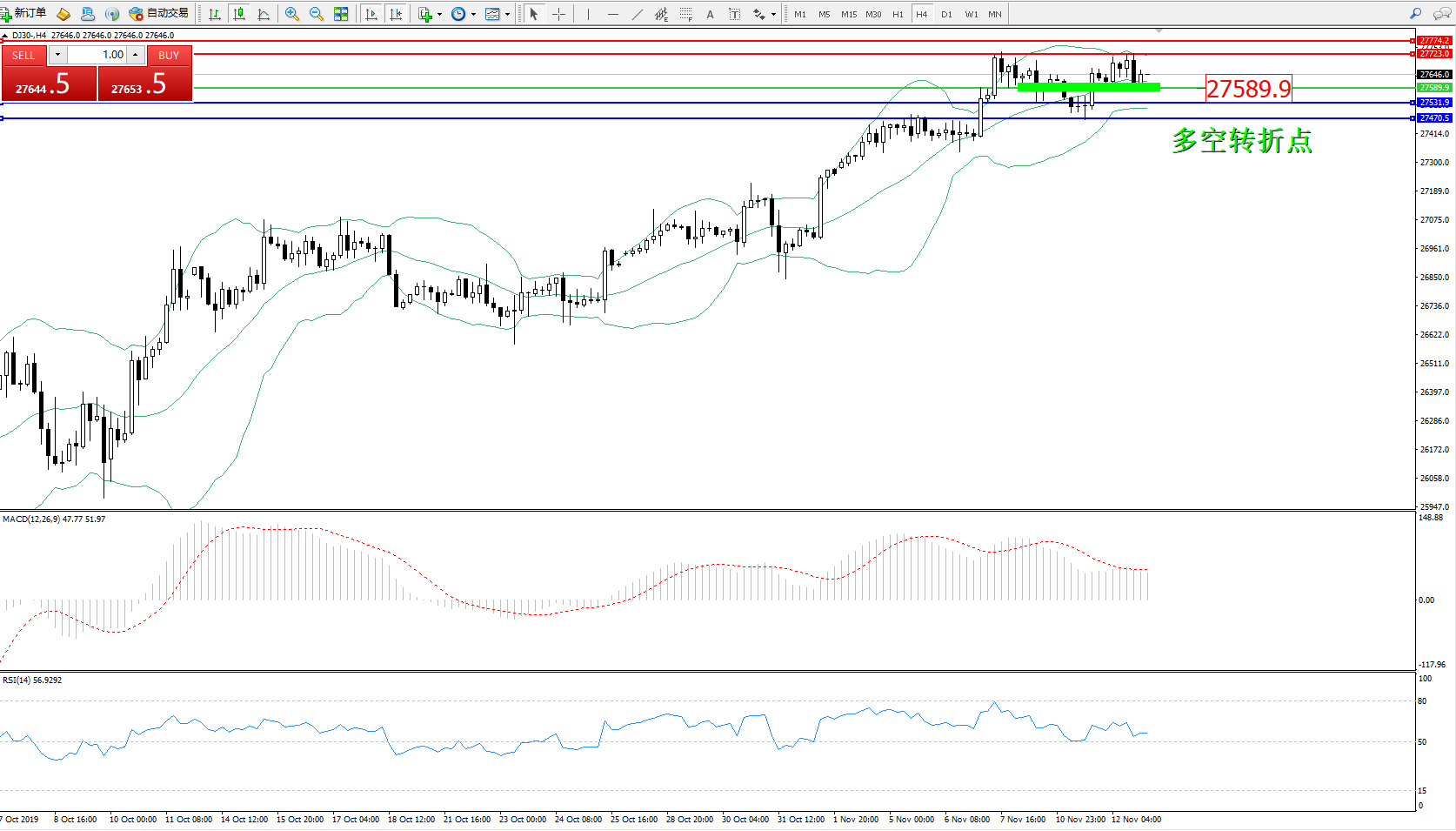 道琼斯指数11月12日(周二)收盘下跌0.10点,跌幅0.02%,报27691.49点。美国10年期国债收益率下跌3个基点至1.91%。费城联储主席哈克表示,反对美联储10月末降息,决策者再次行动之前应该等待观察经济形势。尽管有更多的工人可以加入劳动力大军,但美国就业市场依然“趋紧”。为了缓解制造业和投资的低迷形势,美联储今年进行了三次保险性降息,投资者担心就业市场会迅速恶化,预计就业市场很有可能会逐步走弱,预计美国明年失业率可能会上升大约0.1至0.2个百分点,GDP增长将略低于2%,但不会低太多,美联储不会继续降息。