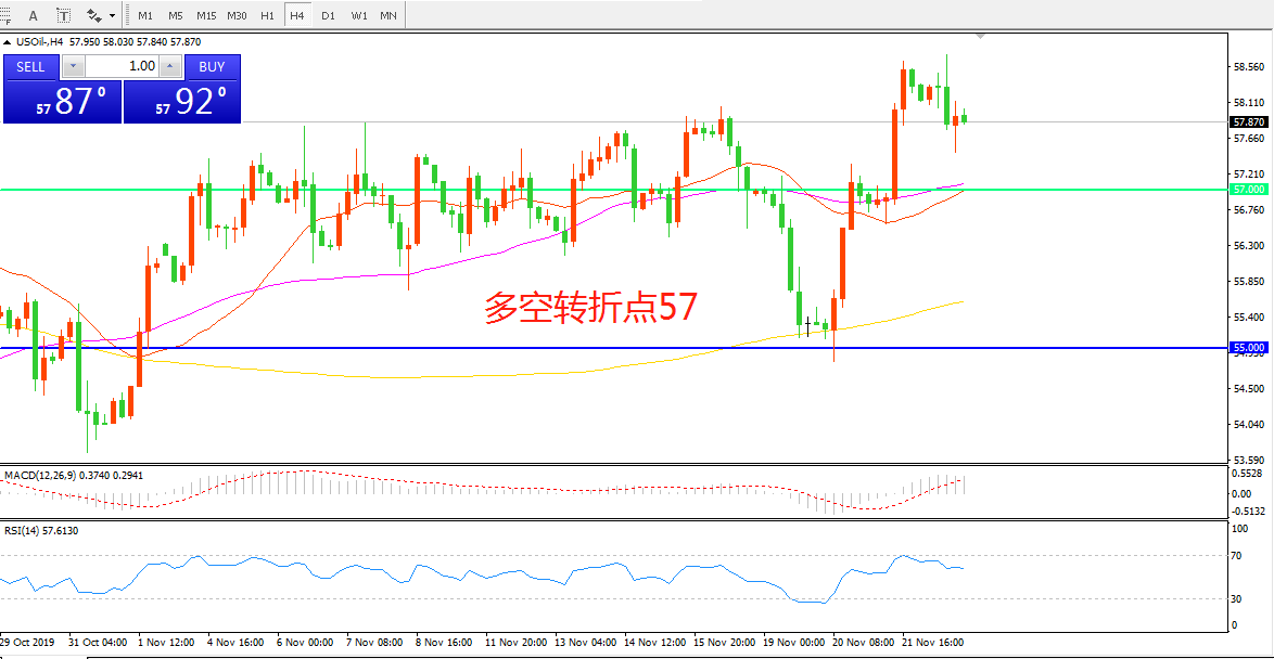 交易策略:在57.00 之上看涨,目标58.50 60.50