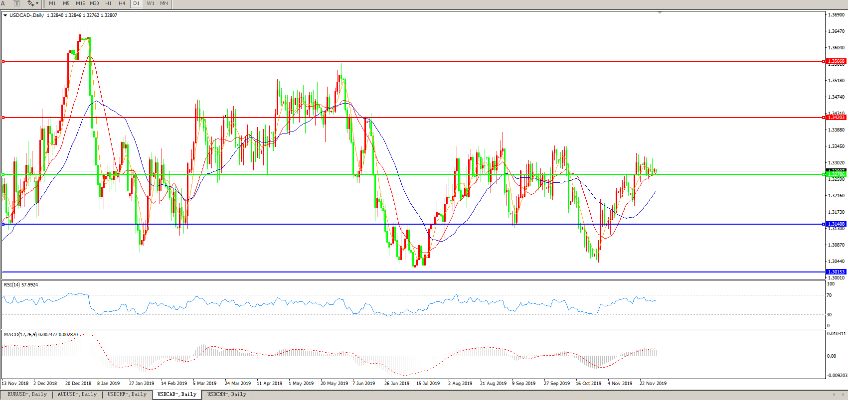技术面简析:日线图均线维持攻势,汇价多空转折区域上方持续窄幅整理,MACD穿越0轴且量能维持放量迹象,RSI震荡走低,短期汇价需关注1.3270关口争夺,预计汇价存进一步上行空间。