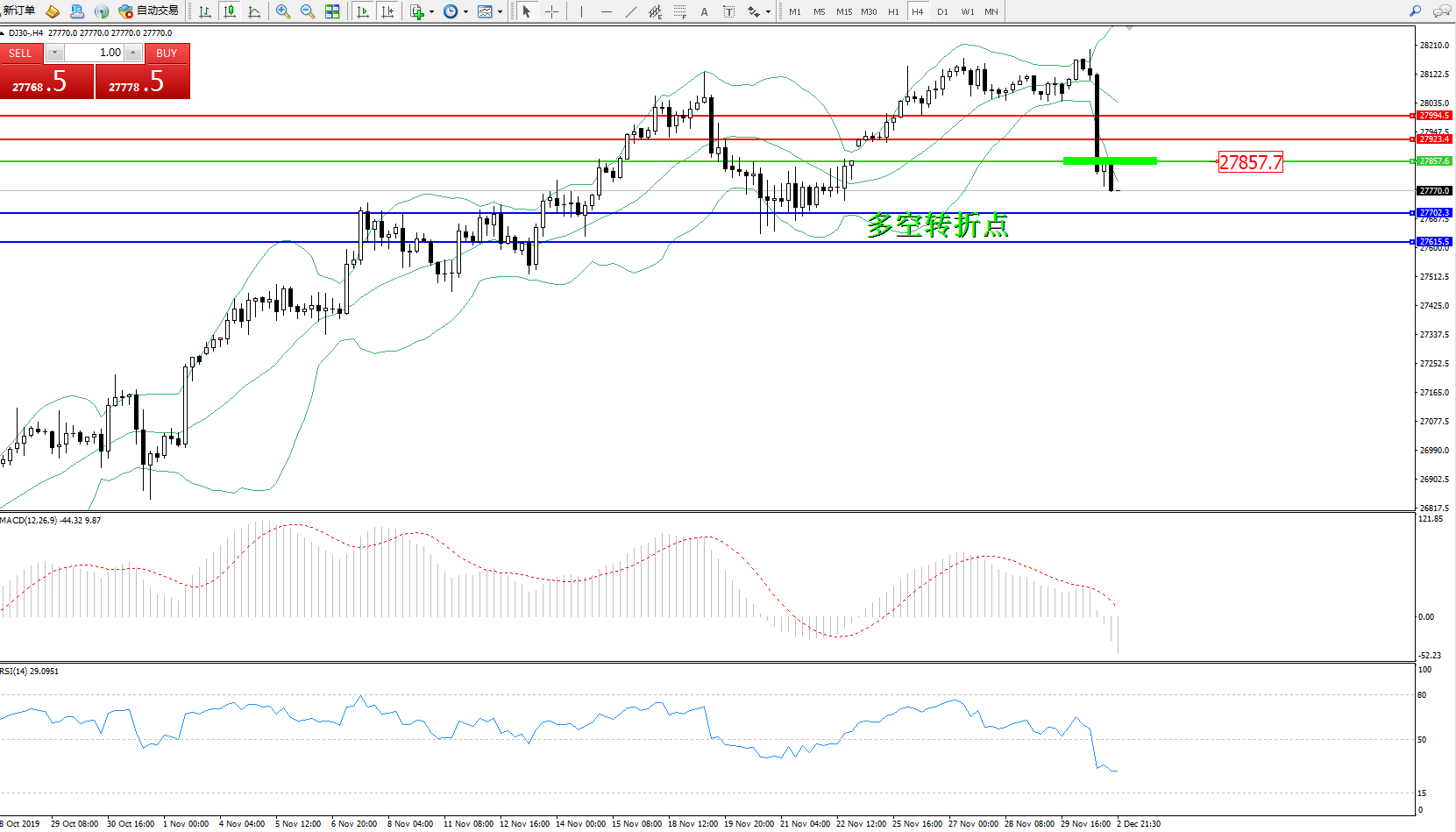 道琼斯指数12月2日(周一)收盘下跌267.50点,跌幅0.95%,报27783.93点。创6周来的最大单日跌幅。美国11月ISM制造业指数连续第四个月萎缩,且建筑支出意外下滑,令市场担心美国可能陷入衰退;美国制造业采购经理指数出乎意料地从48.3降至48.1,接近本轮经济扩张的最低点。特朗普称将恢复针对巴西与阿根廷的钢铁进口税,均令美股承压。