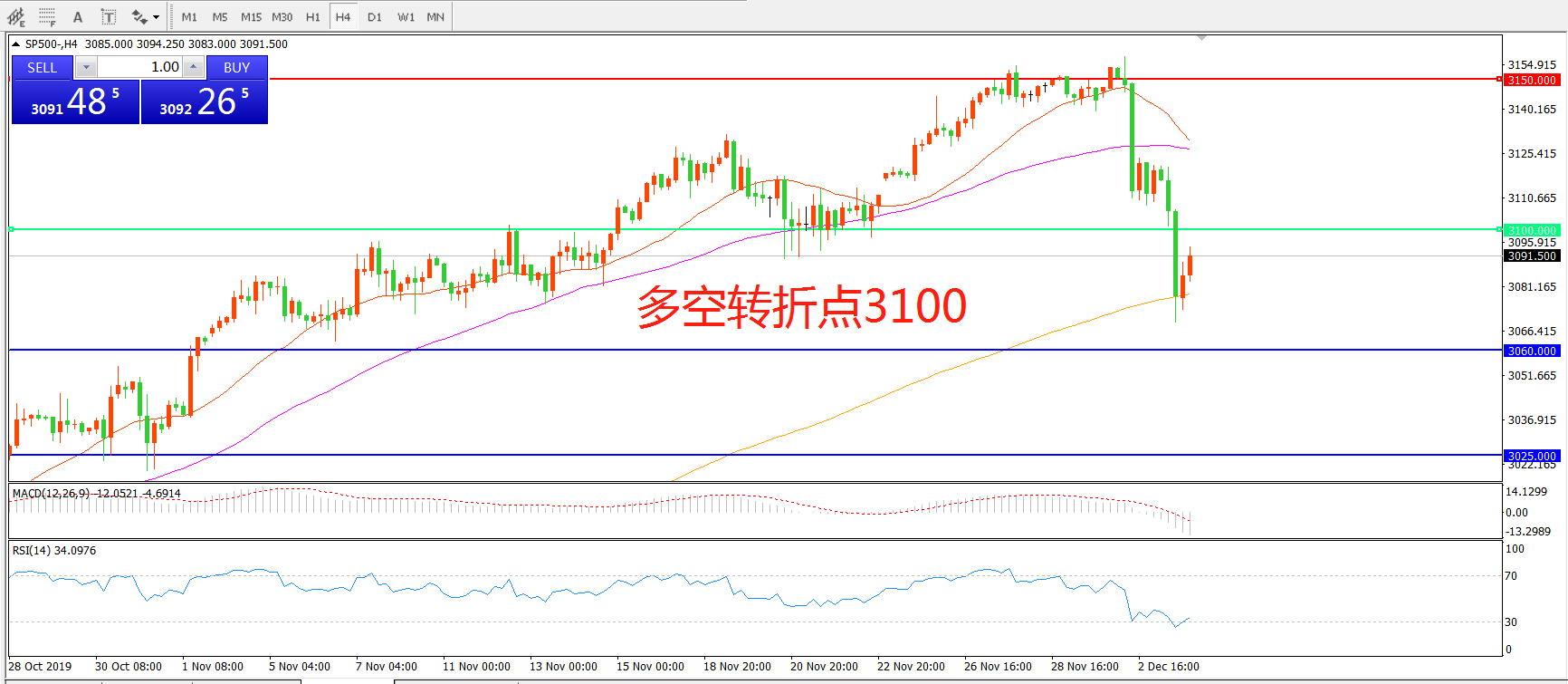 周二(12月4日)美国总统特朗普表示,关于贸易谈判的结束时间,他没有“最后期限。欧盟在贸易上对美国很不公平,可能对从法国进口的24亿美元香槟、手袋、奶酪和其他产品征收最高100%的惩罚性税收,此前特朗普曾在推特上表示,他将重新恢复针对巴西和阿根廷的钢铁与铝材进口税。对贸易局势变坏的预期使美股开启暴跌模式,标普500指数11个板块中有9个板块下跌,2个板块上涨,最终收报3092.73点。