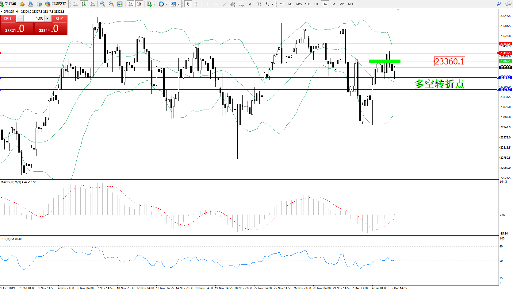 日经指数JPN225——4小时K线图: