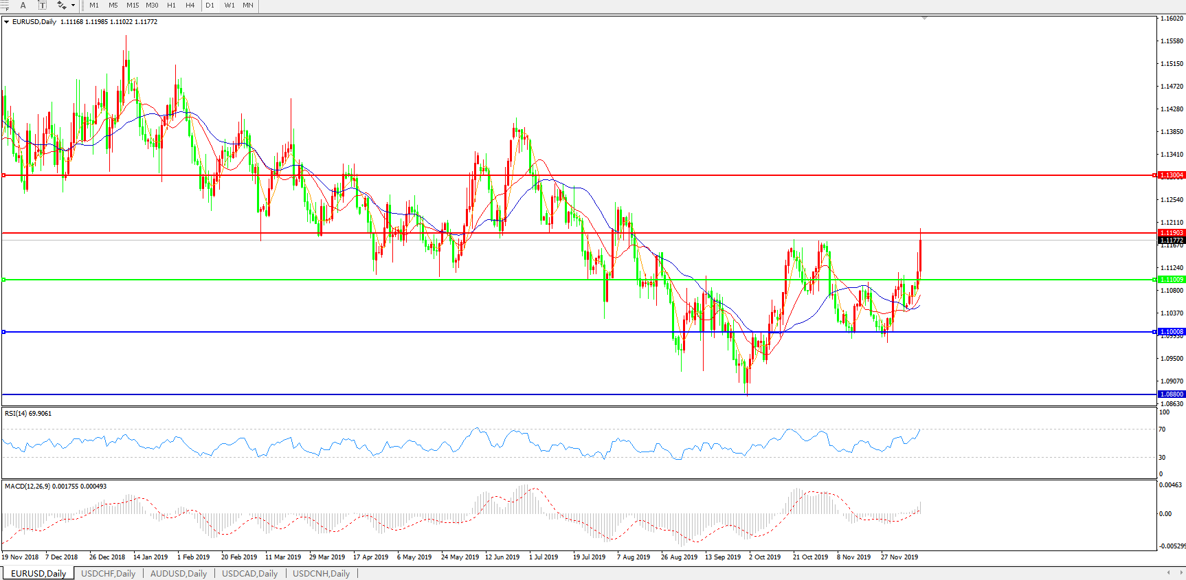 交易策略:1.1100上方看涨,目标1.1190、1.1300