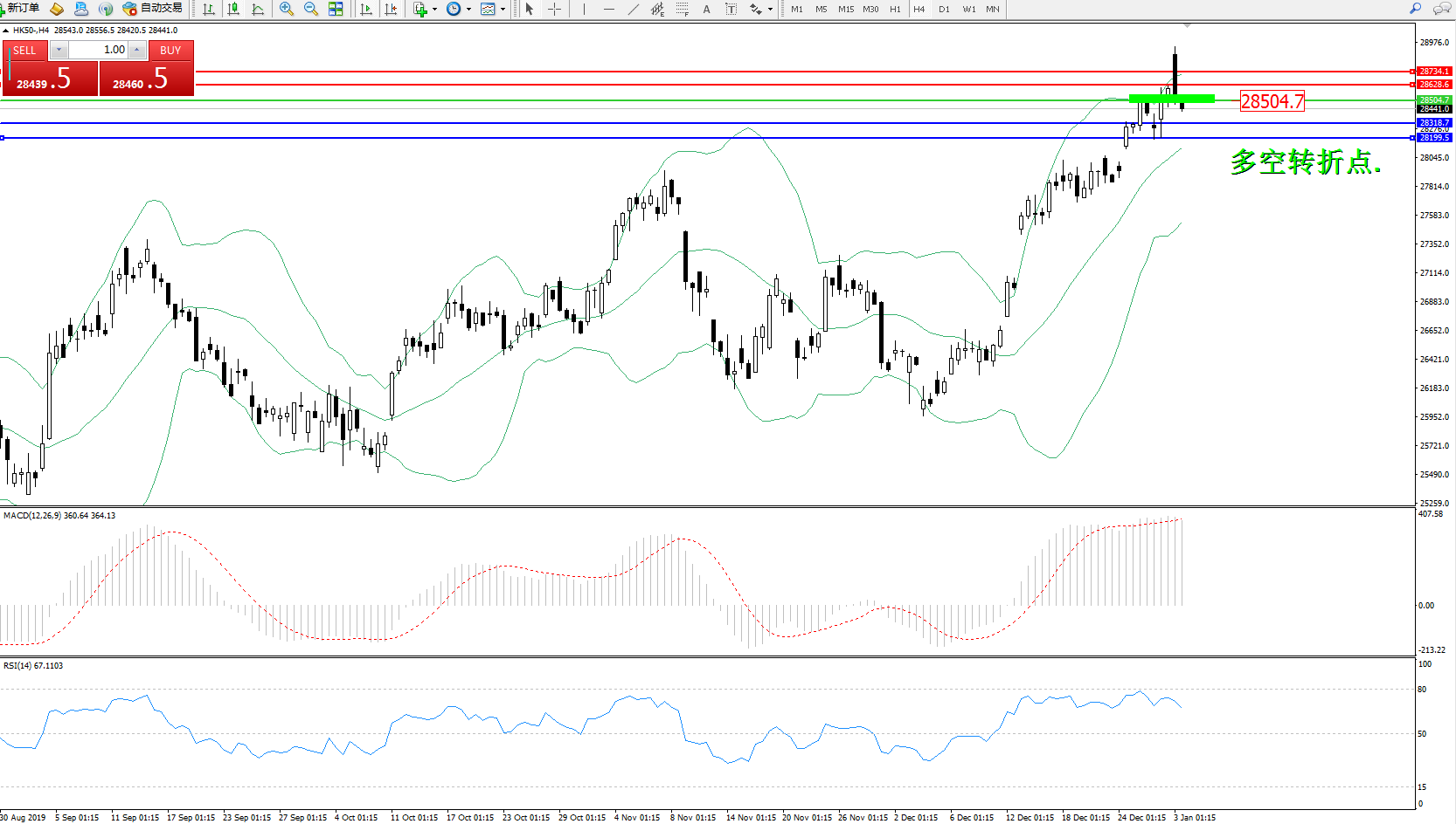 技术点评:多头动力高位急速回撤下移,但仍处于布林带指标中上轨上行趋势中,布林带指标有收口迹象,MACD指标处于多头区域高位持续横盘整理中,RSI指标处于多头区域高位整理有下移态势;