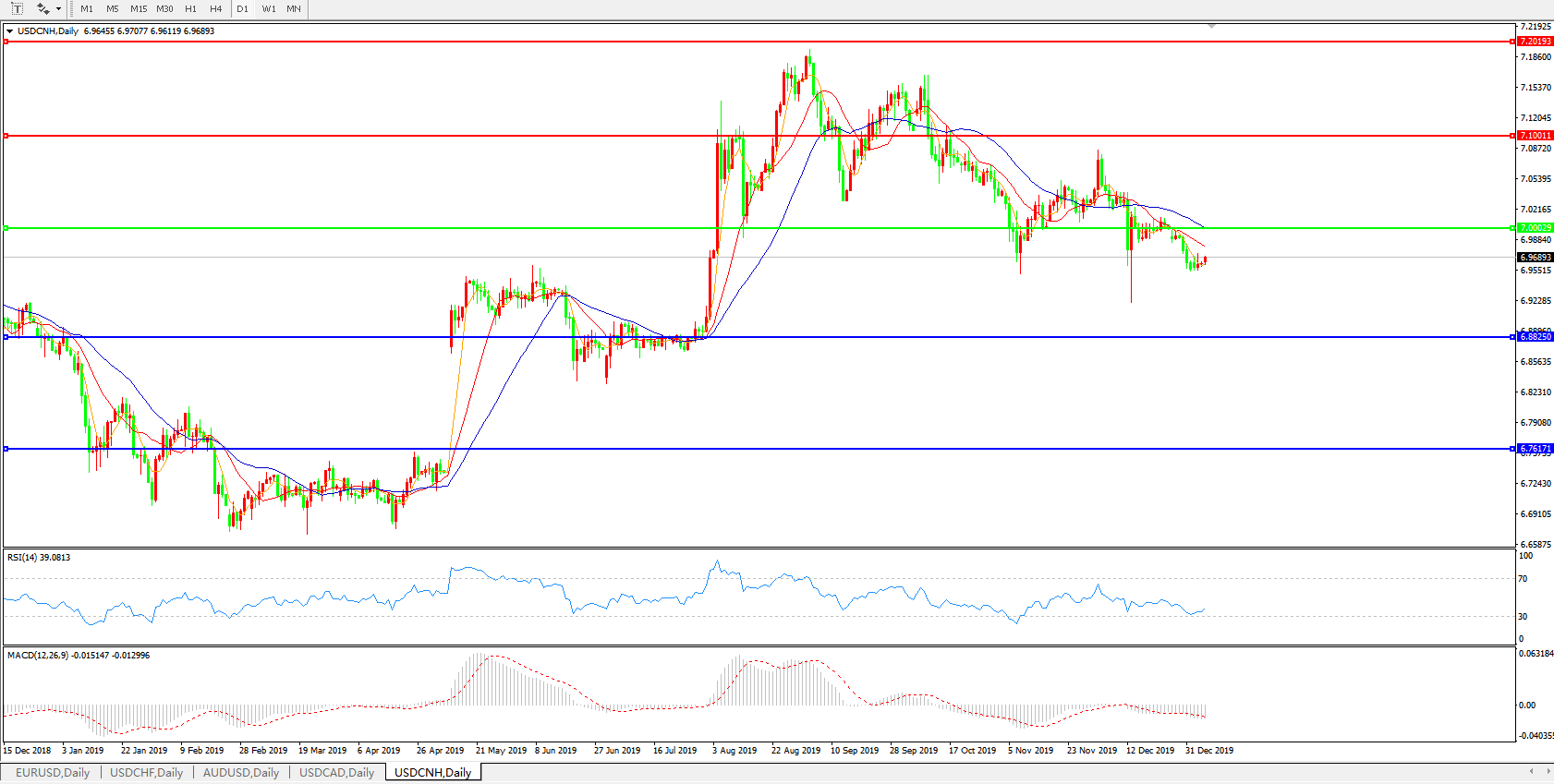 美元兑人民币USDCNH    日线图: