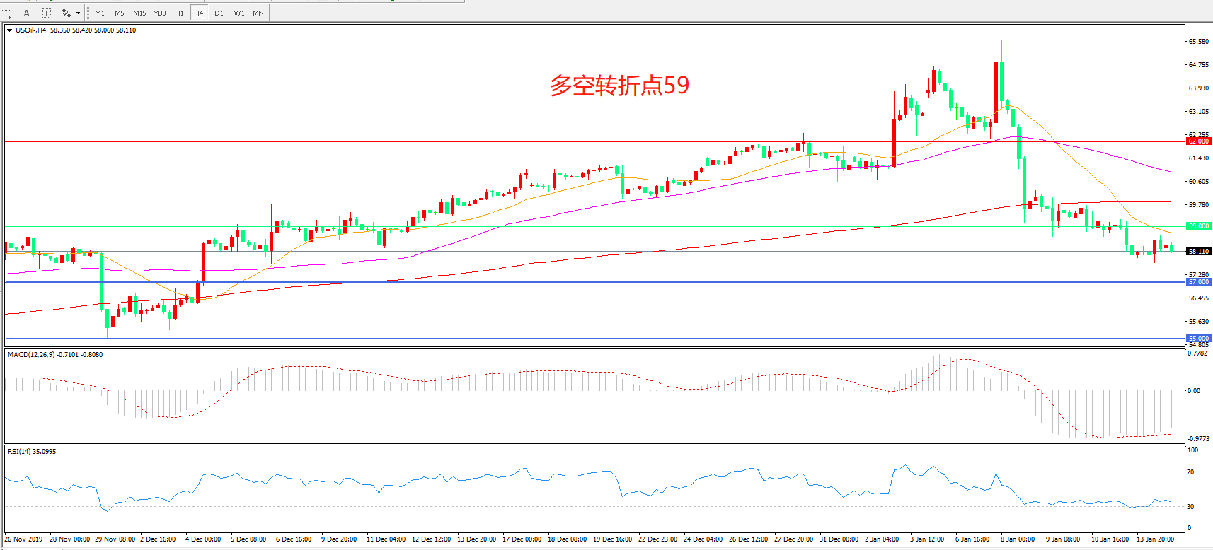 交易策略: 在59.00之下看跌,目标57.00       55.00