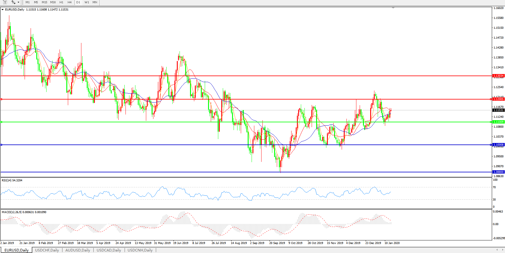 交易策略:1.1100上方看涨,目标1.1200、1.1285