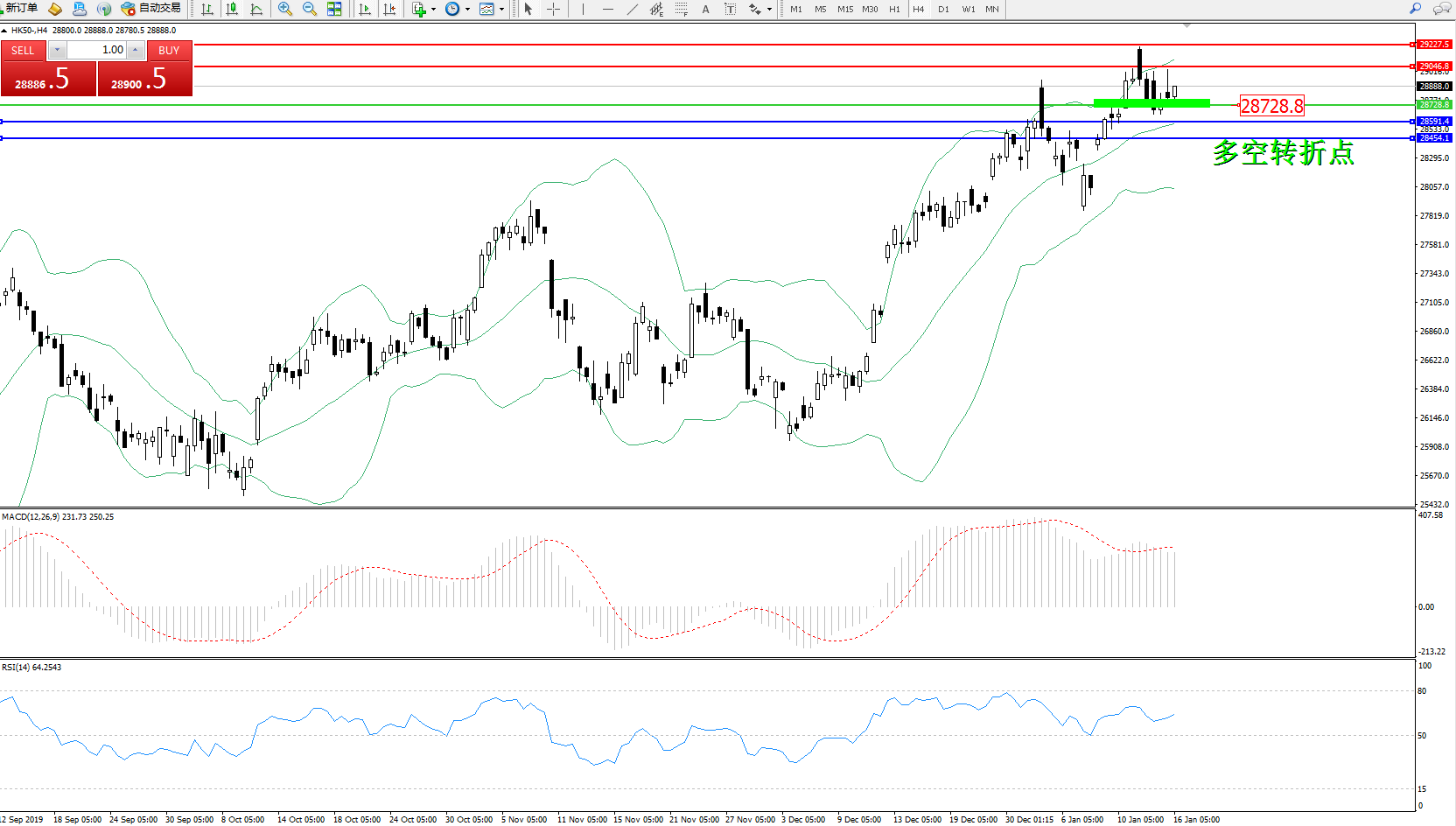 恒指HK50 ——4小时K线图显示: