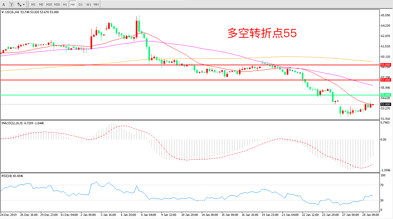 交易策略:在55.00之下看跌,目标52.00 49.50