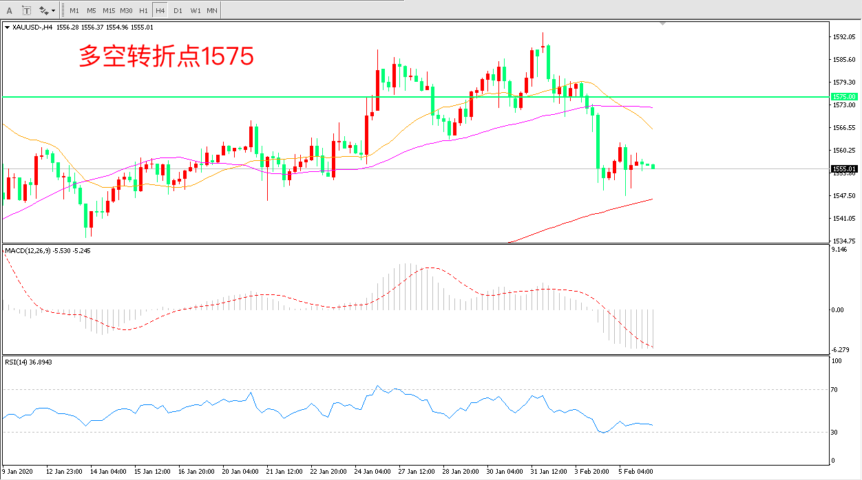 交易策略:在1575.00之下看跌,目标1535.00   1500.00