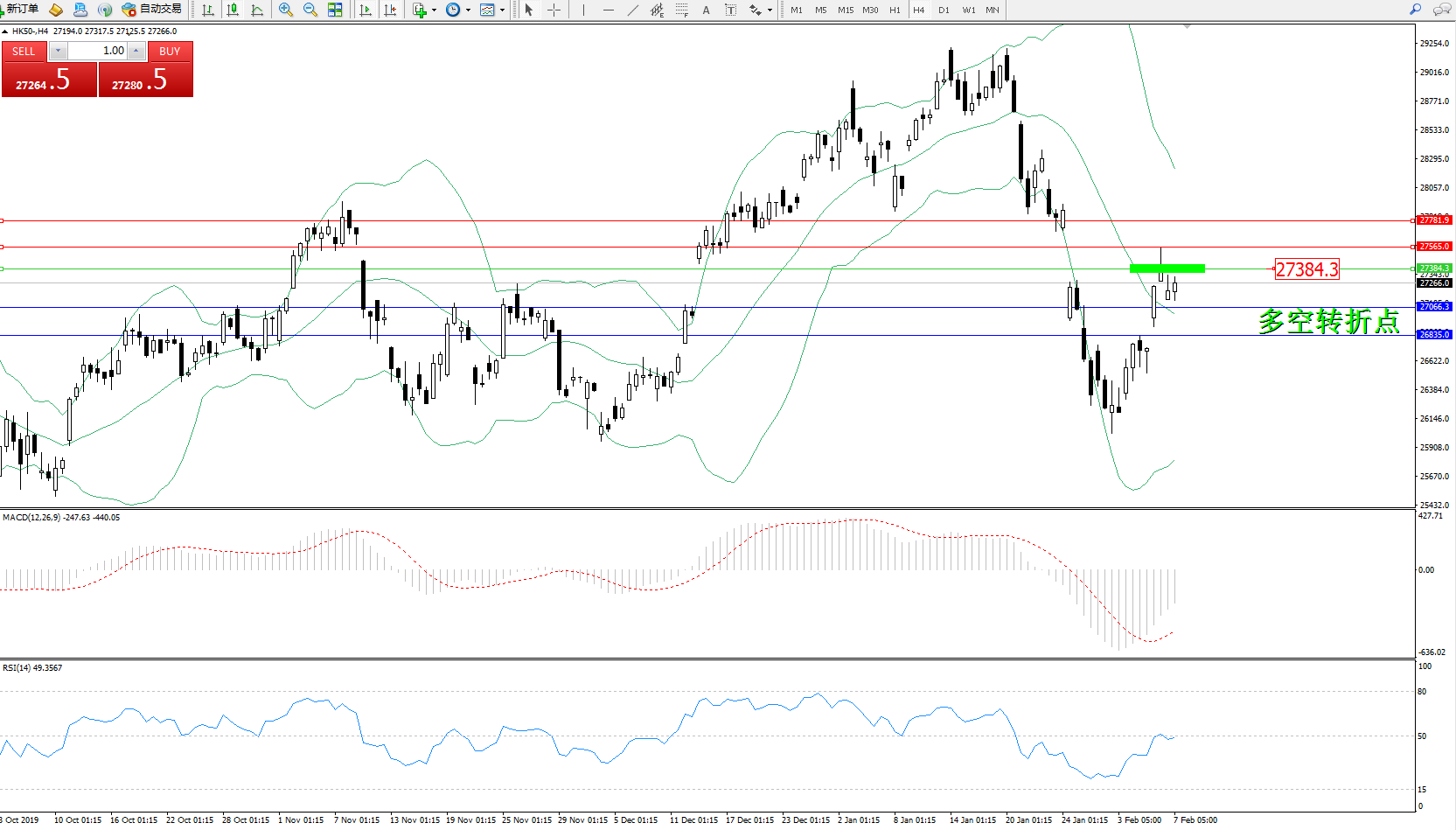 恒指HK50 ——4小时K线图显示: