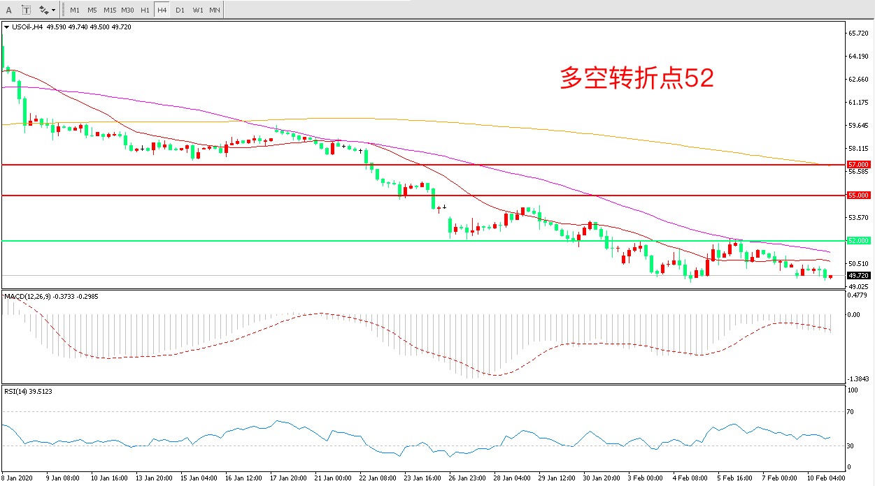 交易策略:在52.00之下看跌,目标49.00         45.00