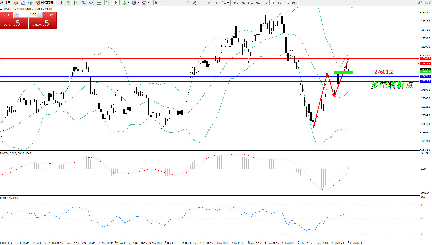 香港恒生指数2月13日(周四)收盘下跌93.66点,跌幅0.34%,报27730.00点;港股市场整体呈现高开低走行情,主要股指皆弱势下跌。日内投资者对亚洲公共卫生事件的担忧情绪再度升温,亚洲多数股票市场也走低,盘前受益于隔夜美股再创新高的影响,主要股指集体高开,但未能延续上涨行情,且湖北新增确诊新冠肺炎增14840例(含临床诊断病例13332例),市场担忧疫情的发展,行情全日表现低迷。主板全日成交1059.19亿港元,港股通净流入34.82亿港元。