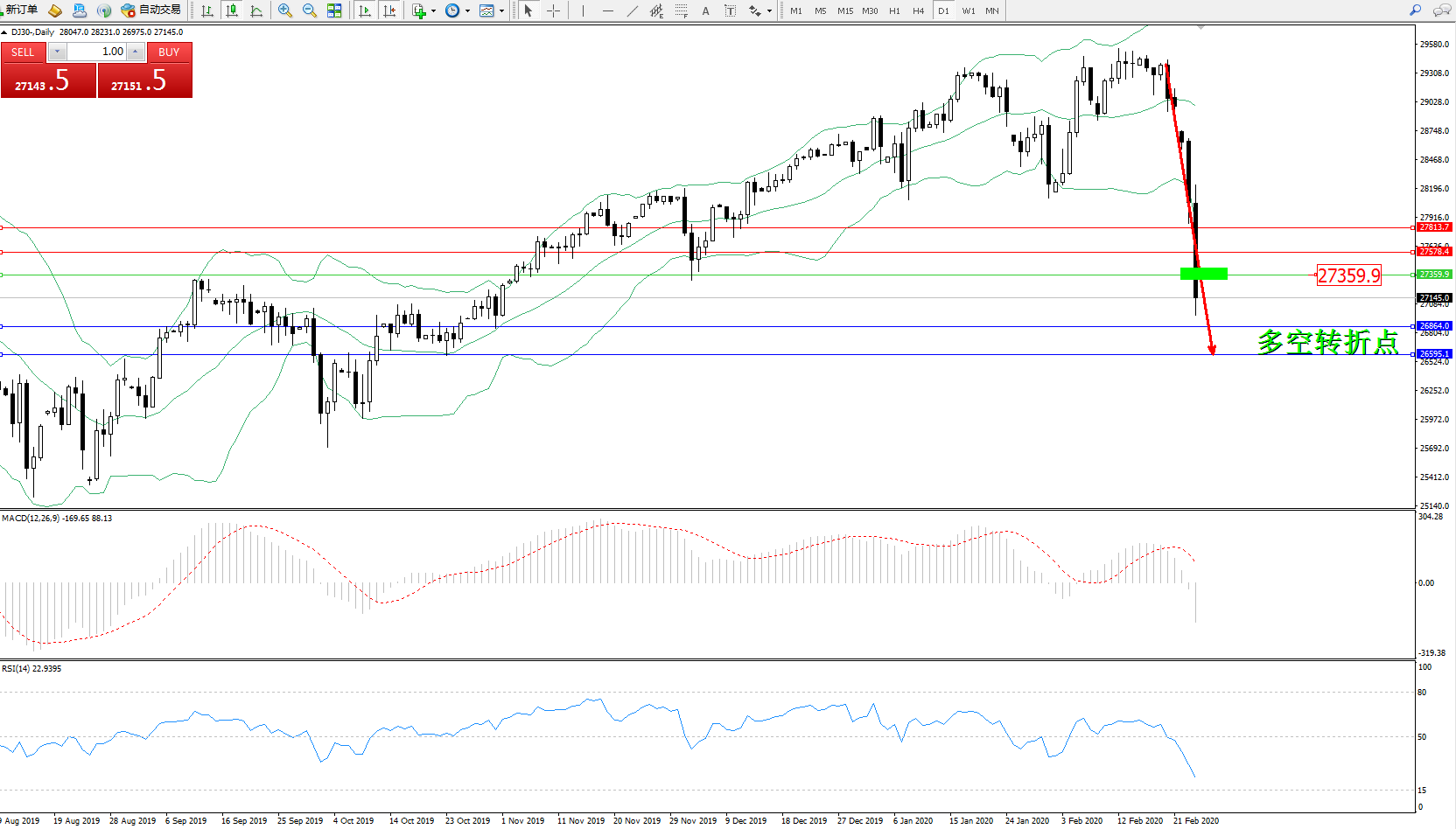 道琼斯指数225日(周二)收盘下跌879.40点,跌幅3.15%,报27081.36点。道指跌破27000点关口,为去年1031日以来首次。疫情在中国以外快速扩散加剧了人们对其全球经济影响的担忧,促使部分人押注美联储将被迫降息,以缓解疫情带来的打击。美国10年期国债收益率纽市盘中跌至历史新低的1.305%,增强了关于央行降息的讨论。预期未来“美元有下档风险”,因美联储政策可能转向鸽派。市场参与者对美联储进一步放松政策的预期继续升温,货币市场预期6月会议上可能降息25个基点。今年全年,交易员预期美联储降息至1%-1.25%,低于当前区间1.5%-1.75%