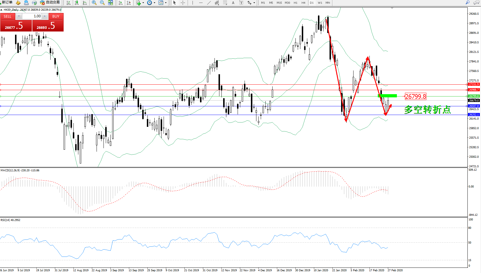 香港恒生指数2月27日(周四)收盘上涨82.13点,涨幅0.31%,报26778.62点;港股市场探底回升明显,主要股指在午后由跌转涨,并且涨幅不断扩大,下午央行对普惠金融服务达标的银行择机定向降准,金融地产股快速走强支撑市场由跌转涨。主板全日成交1104.67亿港元,港股通净流入50.62亿港元。银保监会新闻发布会上表示:鼓励、支持银行机构对受疫情影响的企业在1月25日至6月30日到期的贷款允许展期续贷,做好贷款本金和利息的展期续贷、临时性延期还本付息的安排。对于少数受疫情影响非常严重、恢复生产周期非常长、自身行业或企业具有特殊性的企业,到期的贷款本金和利息的偿还可以根据情况适当再延长。
