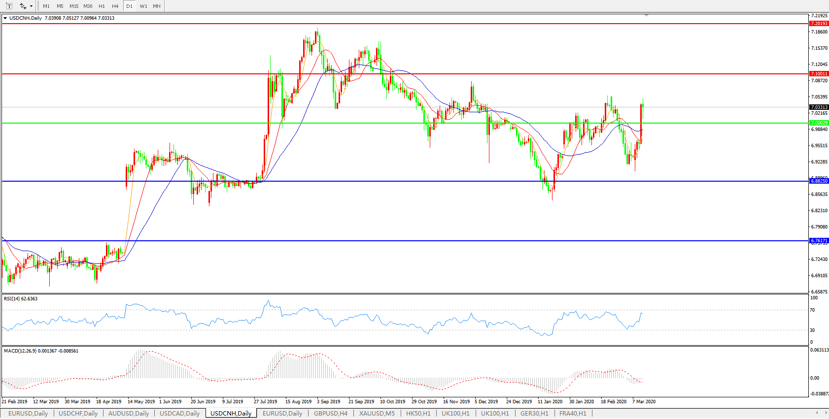 美元兑人民币USDCNH 日线图: