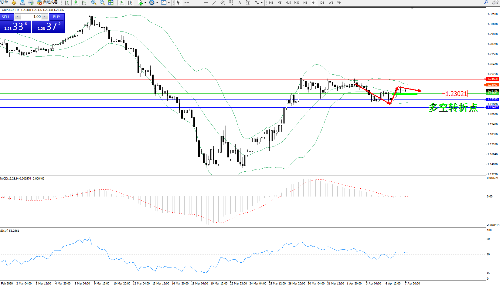 交易策略:1.23021上方看涨,目标1.23997、1.24660