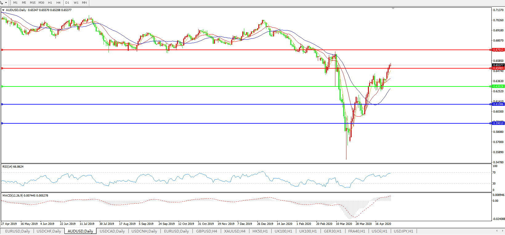 澳元兑美元AUDUSD    日线图: