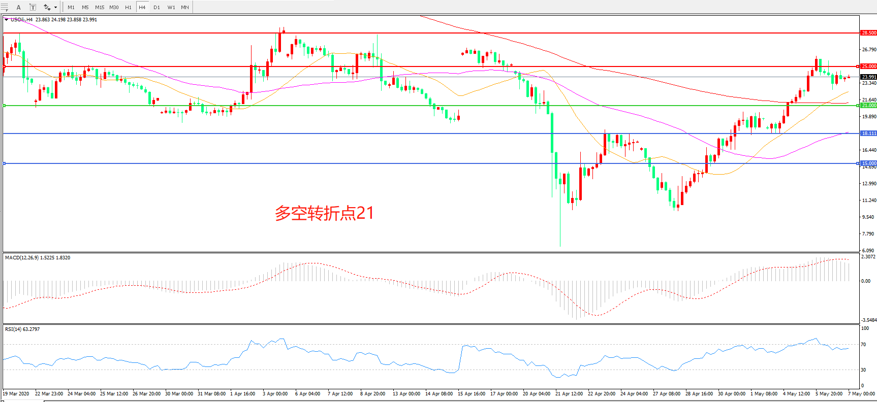 周三(5月6日),美国能源信息署公布的EIA原油数据显示,当周EIA原油库存增加460万桶,低于预期,但由于近期油价涨幅过高,多头获利回吐,美国WTI原油小幅下跌,收报23.60美元/桶。