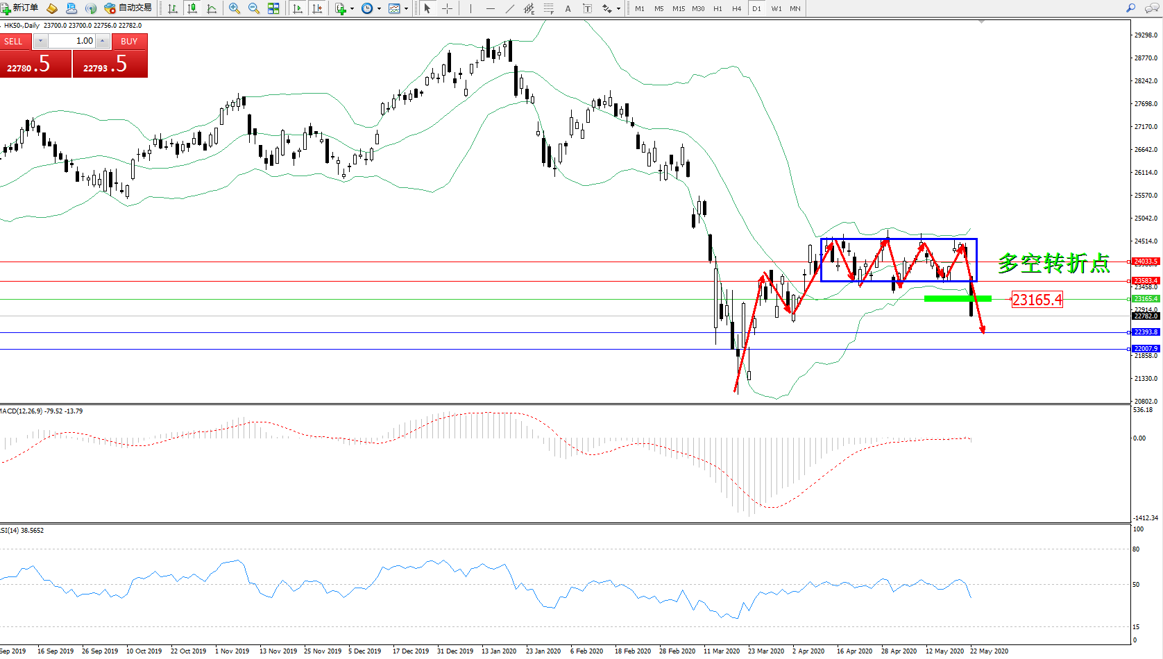 香港恒生指数5月22日(周五)收盘下跌1349.89点,跌幅5.56%,报22930.14点;港股市场主要股指均现单边下跌行情,恒指大跌5.56%重挫1350点,失守23000点大关,并创下4月以来新低。香港本地股领衔大跌,太古地产下挫超10%,恒指国指成份股无一上涨,半数跌超5%以上。今日大市成交额放大至1805.46亿港元,南下资金逆势净流入56.05亿港元。香港经历反修例风波和新冠疫情的双重冲击,经济民生已受到严重拖累,上季GDP下滑8.9%,创下历史最低,3月失业率升至4.2%。唯有筑牢国家安全的堤坝,恢复香港社会的稳定,才是民生再出发的基础,这是社会共识,更是民之所盼、民心所归。全国人大涉港议案释放强烈信号:严惩反中乱港,斩断黑手!