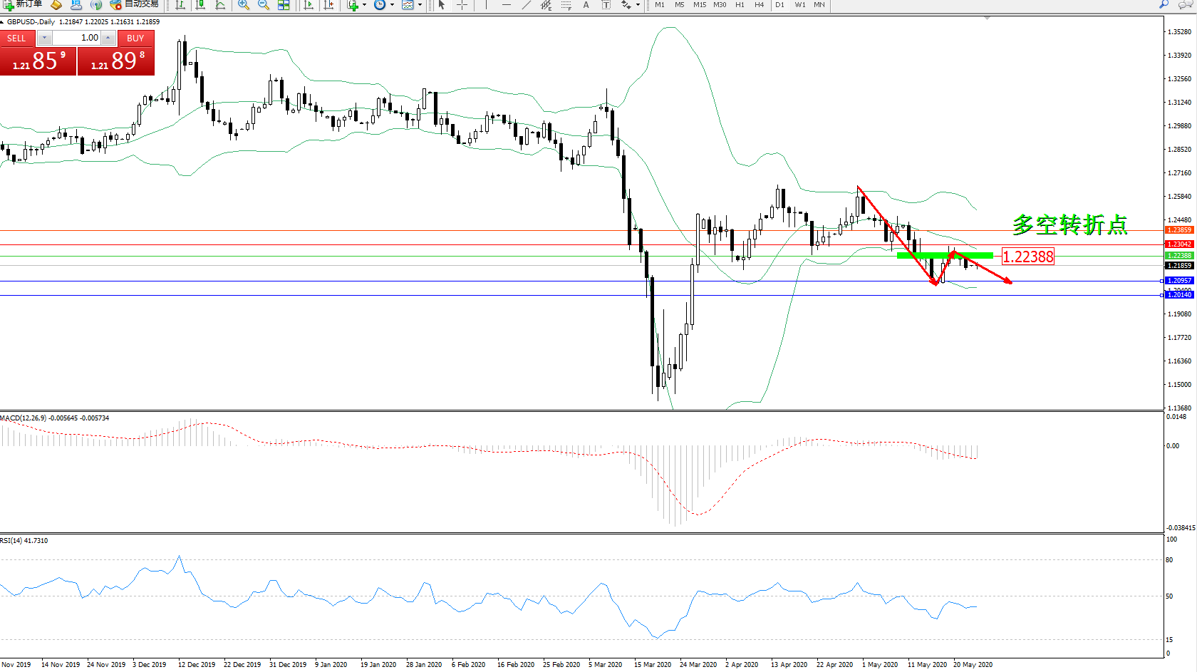 交易策略:1.22388下方看跌,目标1.209571.20140