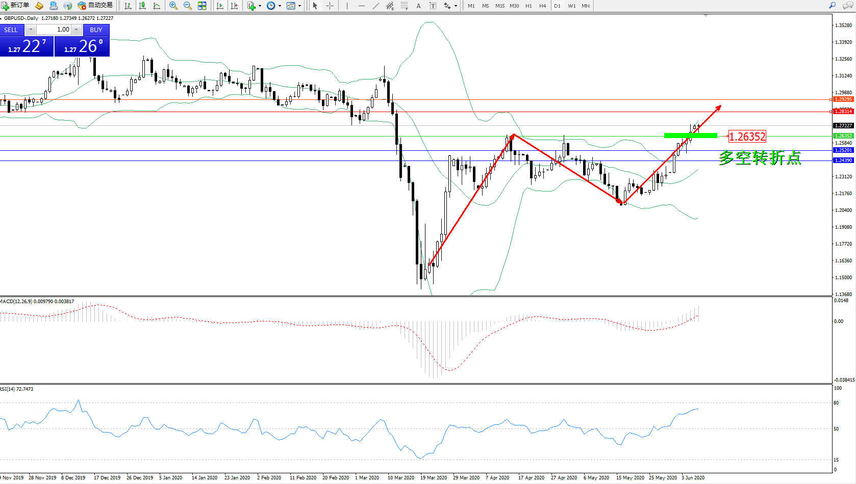 交易策略:1.26352上方看涨,目标1.28314、1.29295