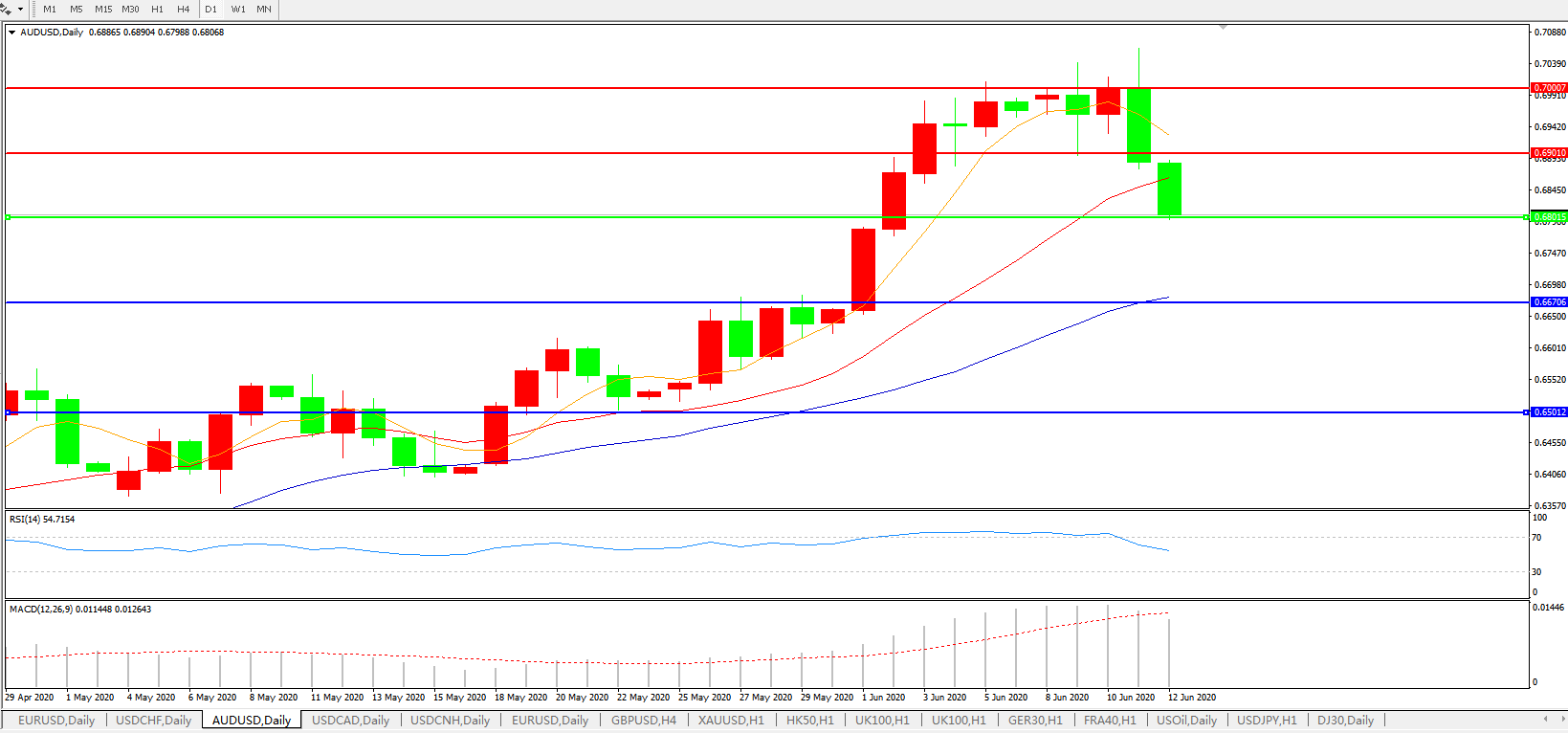 澳元兑美元AUDUSD 日线图: