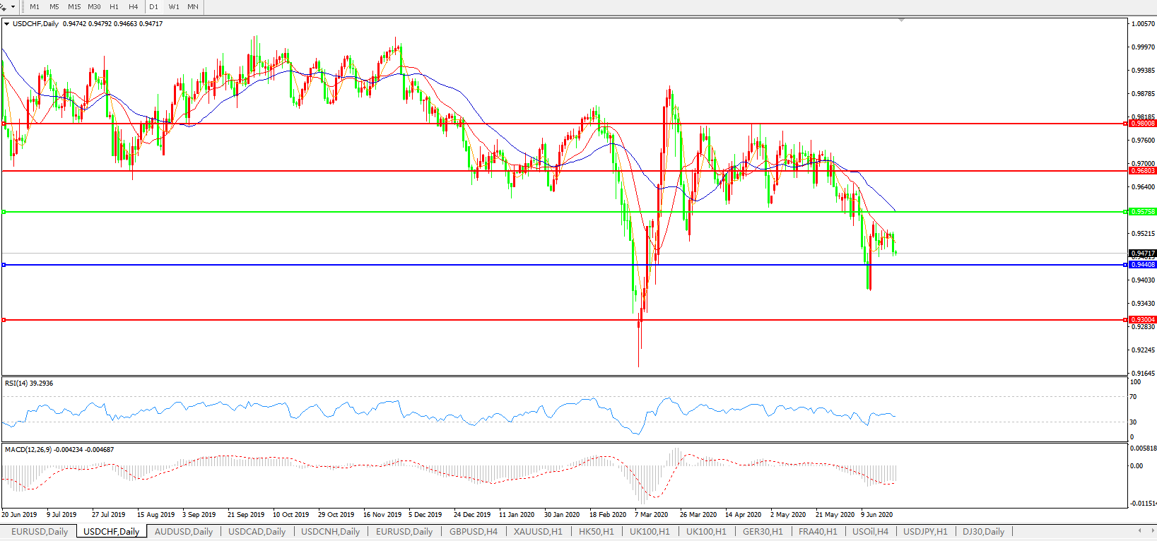 交易策略:0.9575下方看跌,目标0.9440、0.9300