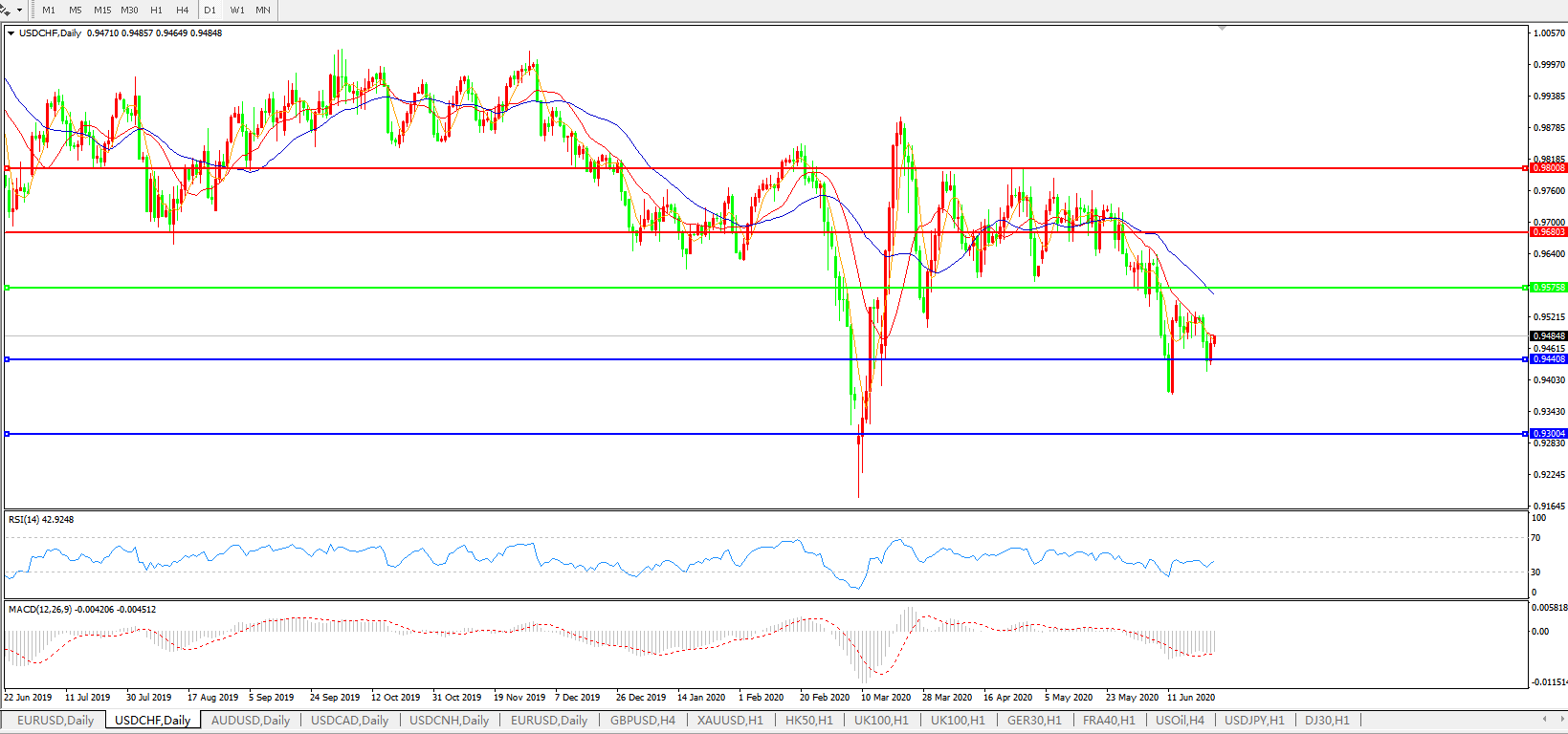 交易策略:0.9575下方看跌,目标0.9440、0.9300
