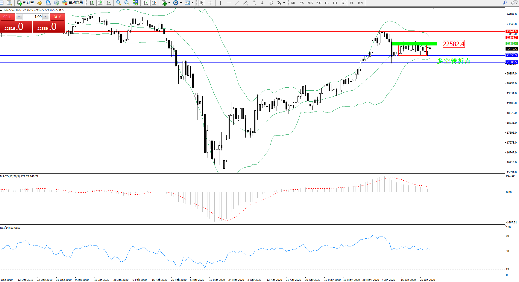 日经225指数6月30日(周二)收盘上涨279.46点,涨幅1.27%,报22274.50点。日内亚洲股市大幅反弹,隔夜恐慌指数大降,日本工业生产数据不佳,日本5月工业生产连续第四个月下滑,降至全球金融危机以来最低水准,凸显出新冠疫情对制造业活动的全面冲击,以及对整体企业及消费者前景的影响。日本正迎来二战之后最严重的衰退,因国内外防疫封锁措施导致供应链受到重创,企业持续歇业,同时压抑消费者支出。部分经济专家举出了日本陷入长期通缩的例子来证明,在民间储蓄率居高不下的状况下,政府不断扩大流动性注入的做法并不会激发起高通胀,但是分析人士相信,在欧美市场的文化背景下,储蓄率上升料仍只是暂时现象,蓄积的消费能量料仍有大概率会重新得到释放,这意味着提防通胀的这根弦,在此后仍需时刻绷紧。