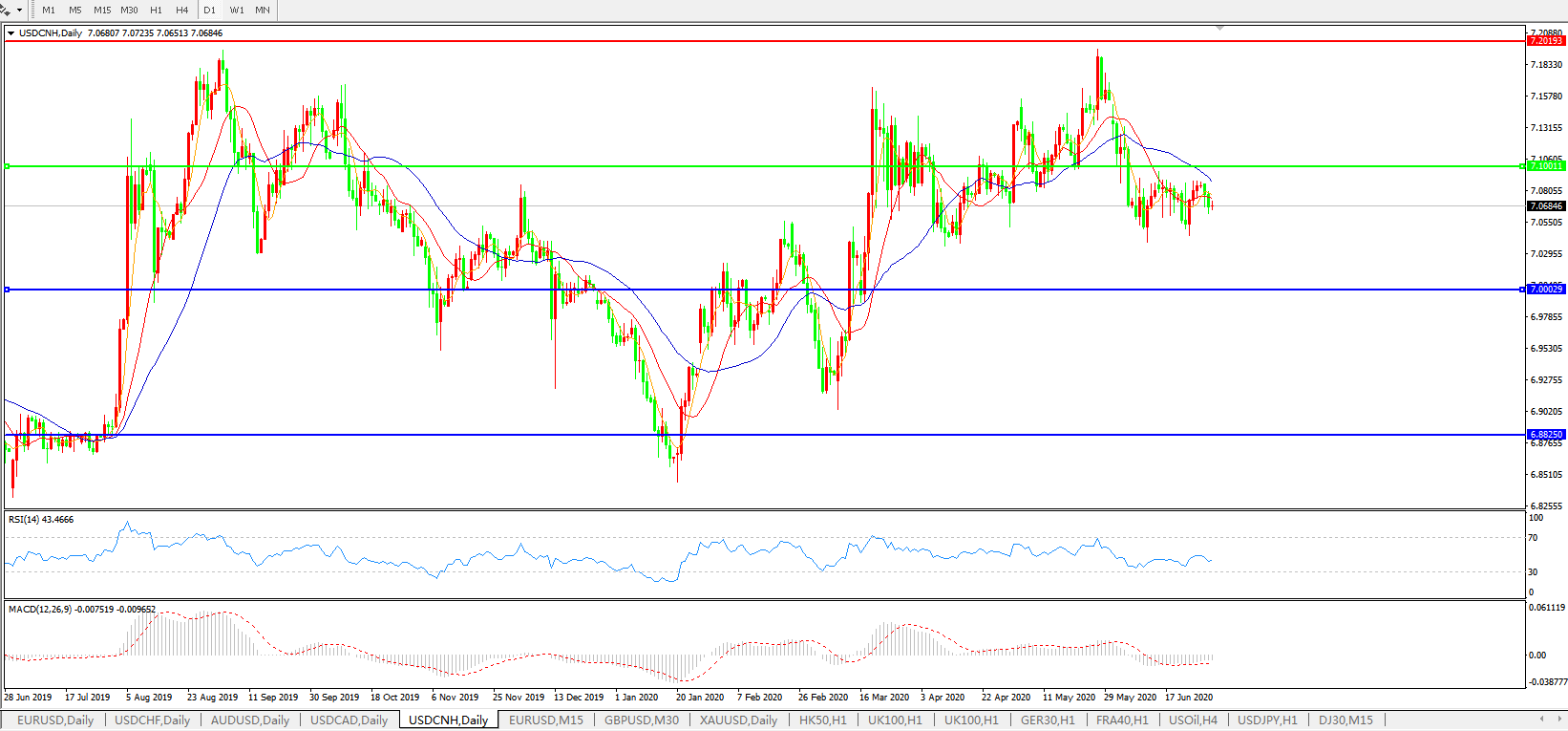 美元兑人民币USDCNH 日线图:
