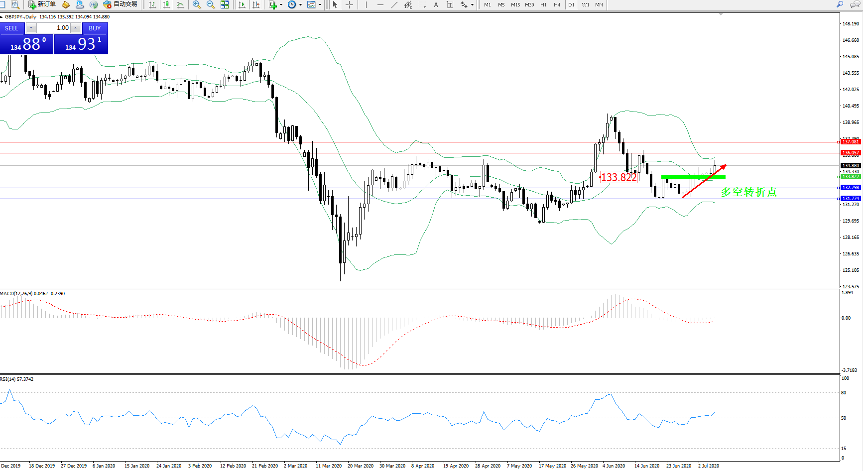 英镑兑日圆弱势震荡上移至134.918附近整理,英国国家统计署公布的数据显示,在英格兰地区新冠病毒检测呈阳性的患者中,仅有22%的人在检测当天报告出现相应症状。报告得出结论说明有很大一部分新冠病毒携带者为无症状患者。稍早英国统计局稍早公布数据显示,英国第一季度单位劳动力成本增长6.2%,创2006年以来最大增幅。英国财政部表示,截止至7月5日,一共有940万个职员在疫情期间停薪休假,第一季度工人平均产出同比下降3.1%。英政府打算暂时提高房产交易印花税起征点并减免酒店餐饮服务业增值税,以缓解新冠疫情冲击、刺激经济复苏。
