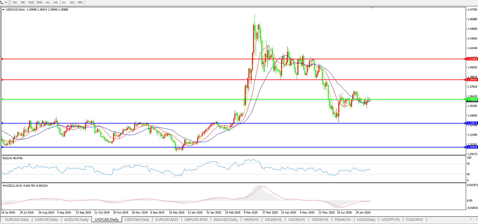 交易策略:在1.3600之下,看跌,目标价位为1.3300、1.3000