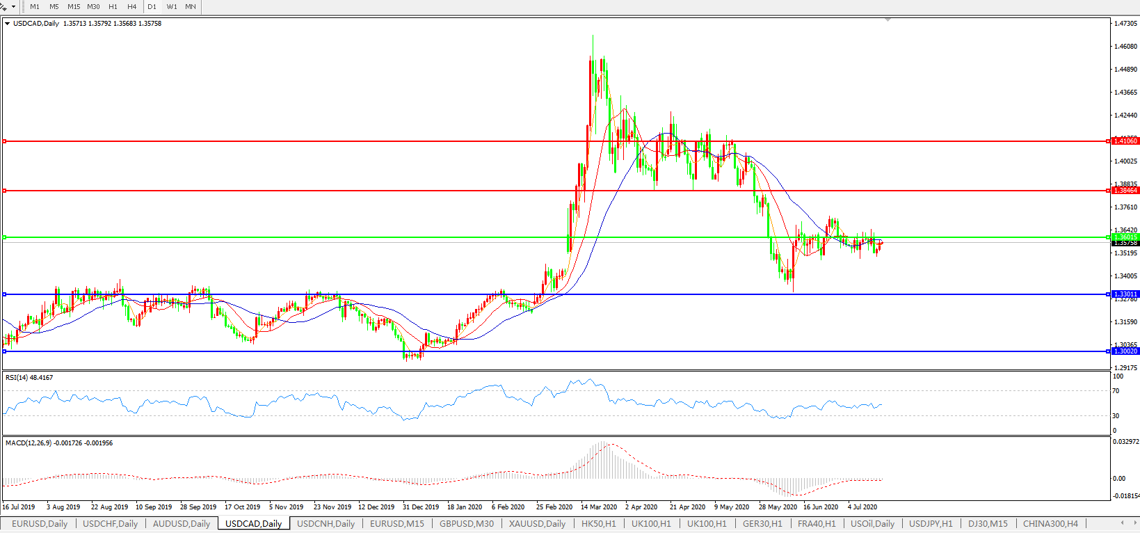 交易策略:在1.3600之下,看跌,目标价位为1.3300、1.3000