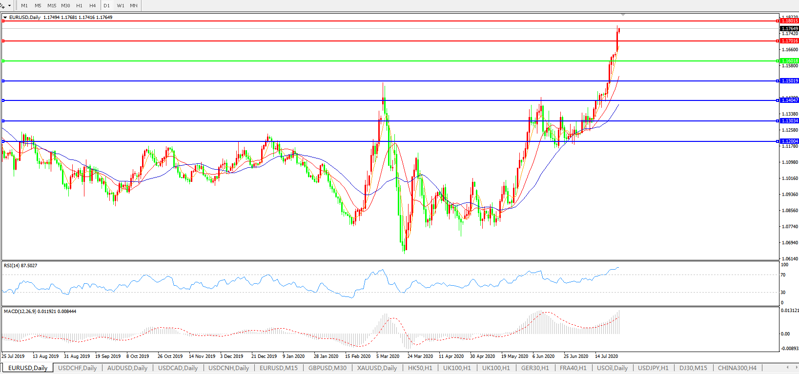 OANDA高级市场分析师Edward Moya称,看起来美元正在失去桂冠,人们对美联储将继续暗示准备在更长时间内采取更多行动寄予很高的希望,且美国经济的复苏将不会像欧洲那样一帆风顺。欧元兑美元上涨0.82%至1.1752,连续第七日攀升,盘中稍早触及2018年9月来最高的1.1781美元。Moya称,如果欧洲能够遏制疫情的任何反弹,欧元兑美元可能会扩大涨幅至1.20;我认为,你将看到稳定的投资和市场布仓回到欧洲,这将为美元进一步走软提供一些空间。