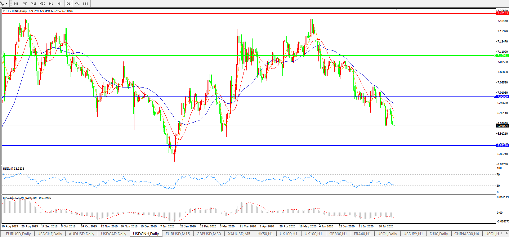 人民币兑美元即期周三放量收升至近一周新高,中间价亦创近一周高位;交易员称,日内美指冲高回落,人民币表现相对坚挺,午后扩大反弹;另外美国白宫与国会围绕新冠救助方案的僵局未解,双方都指责对方毫不让步; 全球汇市方面,美元周三小涨,因美国公债收益率跳升;而纽元短暂触及一个月低位,此前新西兰联储扩大购债计划;美元指数已从3月触及的三年高点下跌9%,单是7月就下跌4%;对于8月美元得到的支撑是否能够引发反弹或暂停跌势,投资者看法不一