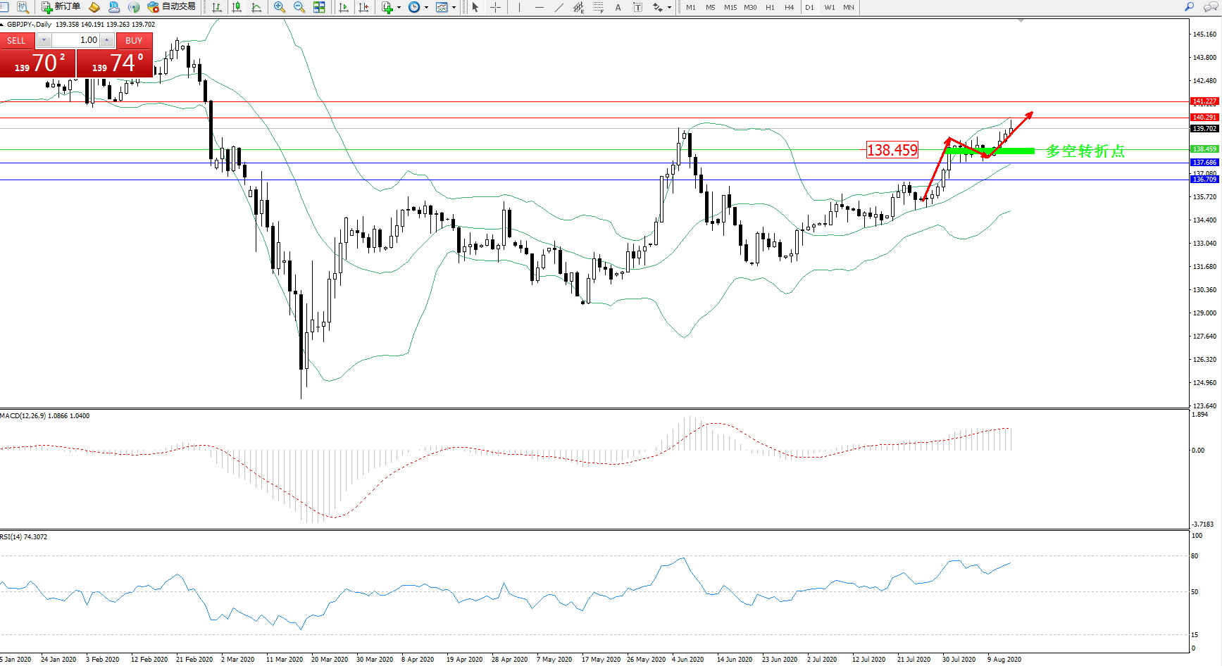 英镑兑日圆弱势上移至139.722附近震荡,8月12日数据显示,英国第二季度GDP季率初值为-20.4%,这意味着英国遭受了主要经济体中最严重的经济下滑。英国经济连续两个季度下滑,达到了经济衰退的标准。不过,英国第二季度GDP年率初值为-21.7%,略好于预测的-22.4%。GDP数据糟糕的一个原因是,英国服务业占经济活动的比例高达80%以上。因此,关闭酒吧、餐馆、医疗机构、学校、艺术、娱乐和其他以联系为导向的服务行业,尤其会让英国经济受到影响。不过,英国经济在5月和6月再度开始增长,7月初服务业的数据改善,也应该会为经济复苏增添动力。