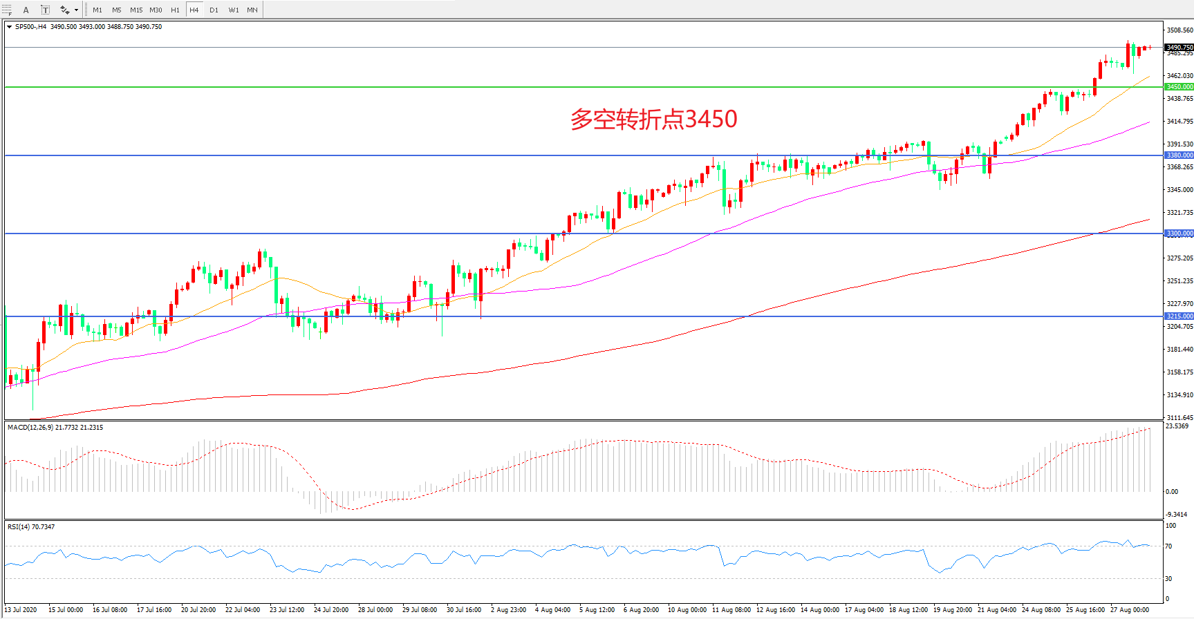 交易策略:在3450.00之上看涨,目标3530.00 3600.00