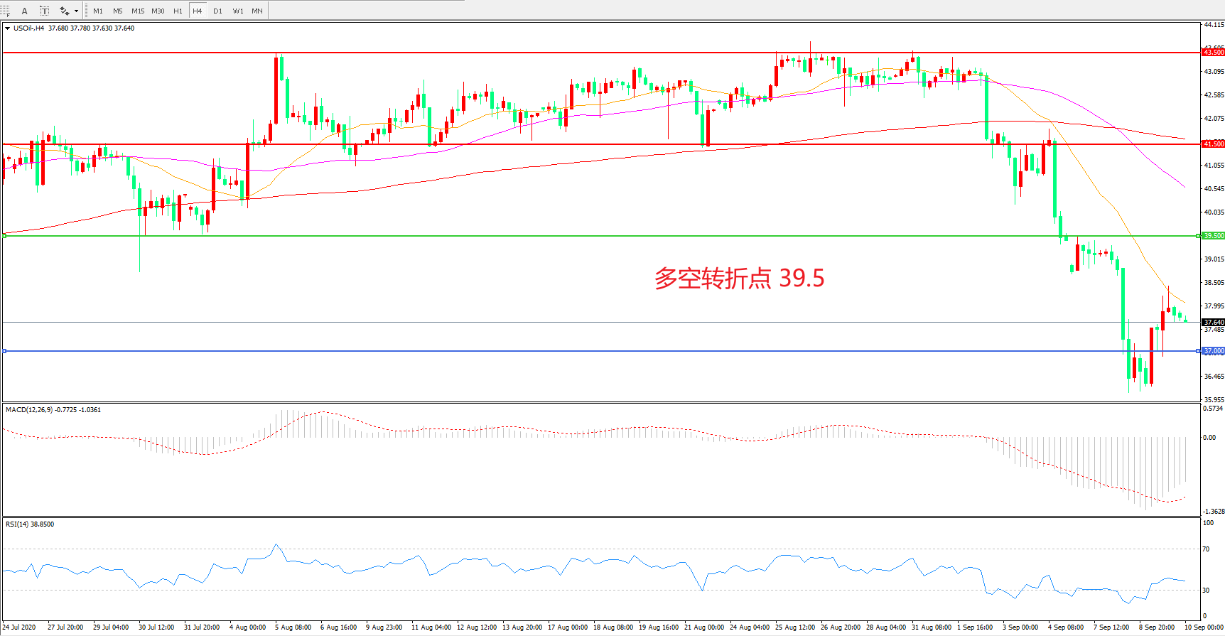 周三(9月9日),在经历了两天的快速下行后,市场情绪趋于稳定,美国WTI原油小幅反弹,收报37.71美元/桶,从大的宏观环境上来看,美股也是反弹趋势走的比较好,但目前尚无法确定油价是下跌中继还是见底反弹,需要观察近几日的走势进行确定。