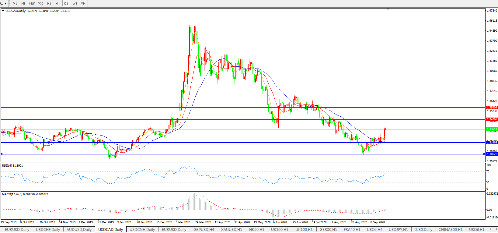 美元兑加元USDCAD 日线图: