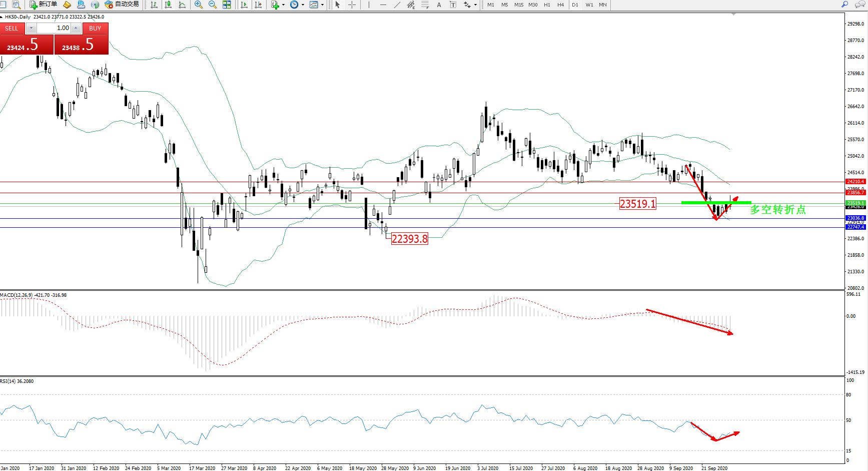 香港恒生指数9月30日(周三)收盘上涨183.52点,涨幅0.79%,报23459.05点;港股主要指数均收涨,恒指盘中一度大涨超2%,恒指本月累计跌幅达6.82%,最高点为25254.14点,最低点为23124.25点。恒生科技指数涨1.58%。恒大系集体上涨,中国恒大暴涨超19%;大型科技股走高,阿里涨近4%,美团涨3%,小米涨2%,腾讯涨1.1%。手游股跌幅明显,纸业股持续回调。节前效应下,大市成交额不足千亿港元。9月收官,恒指本月大跌6.82%。此前因投资者担忧公司须偿还战略投资者1300亿元本金和相应分红,中国恒大股价一度在9月25日跌至13港元,随着目前警报基本被解除,中国恒大(3333.HK)今日大涨19.39%报19.7港元,较近期最低价已累计反弹51%。公司昨晚公告,近日与持有恒大地产总额1300亿元的战略投资者进行商谈,29日与持有恒大地产总额863亿元的战略投资者签订补充协议,这些战略投资者已同意不进行回购,继续持有恒大地产权益,股权比例保持不变。剩余的437亿元战投中,公司已与155亿元战投商谈完毕,正在办理审批手续,还有282亿元战投仍在商谈中。