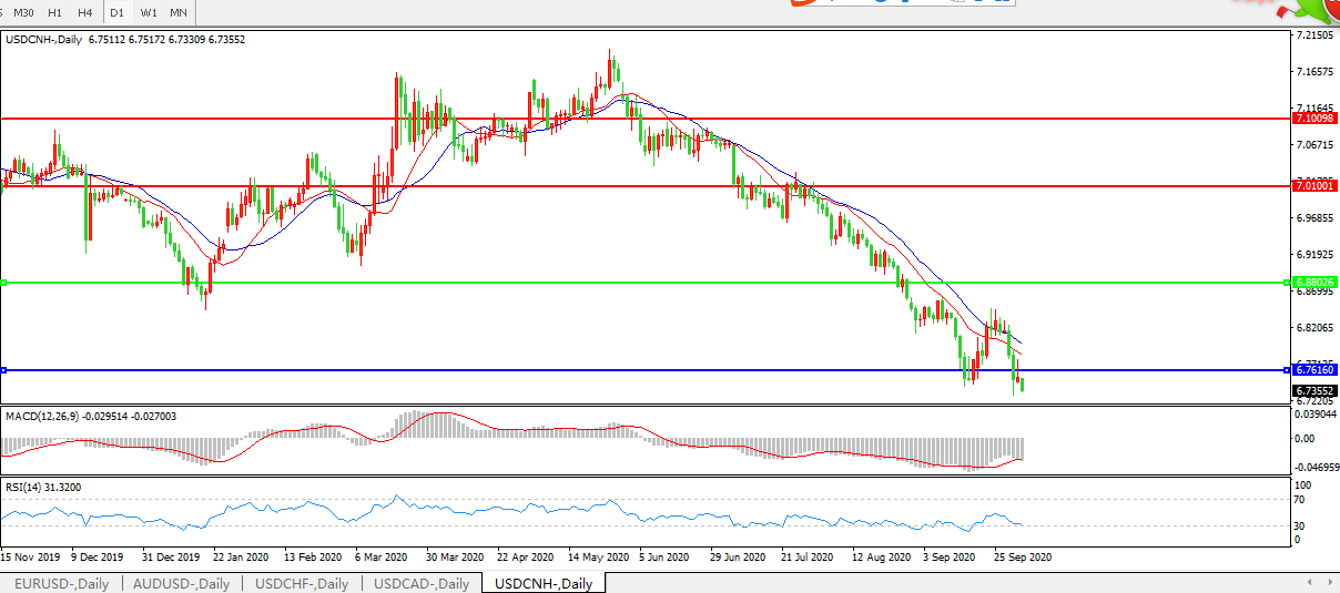 美元兑人民币USDCNH 日线图: