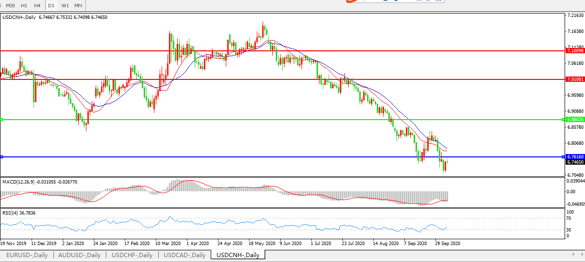 美元兑人民币USDCNH 日线图: