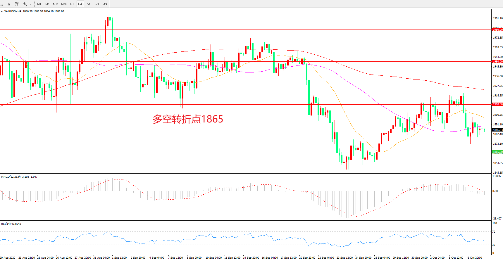 近期,市场情绪完全被财政刺激谈判的消息牵着走,周三(10月7日),特朗普再次呼吁联邦政府为航空业提供数十亿美元的就业支持,而一天前他刚刚停止与民主党进行财政刺激谈判,这种反复无常的风格让市场波动快速上升,美元指数回吐部分上个交易日录得的涨势,金价小幅上行,收报1887.20美元/盎司。