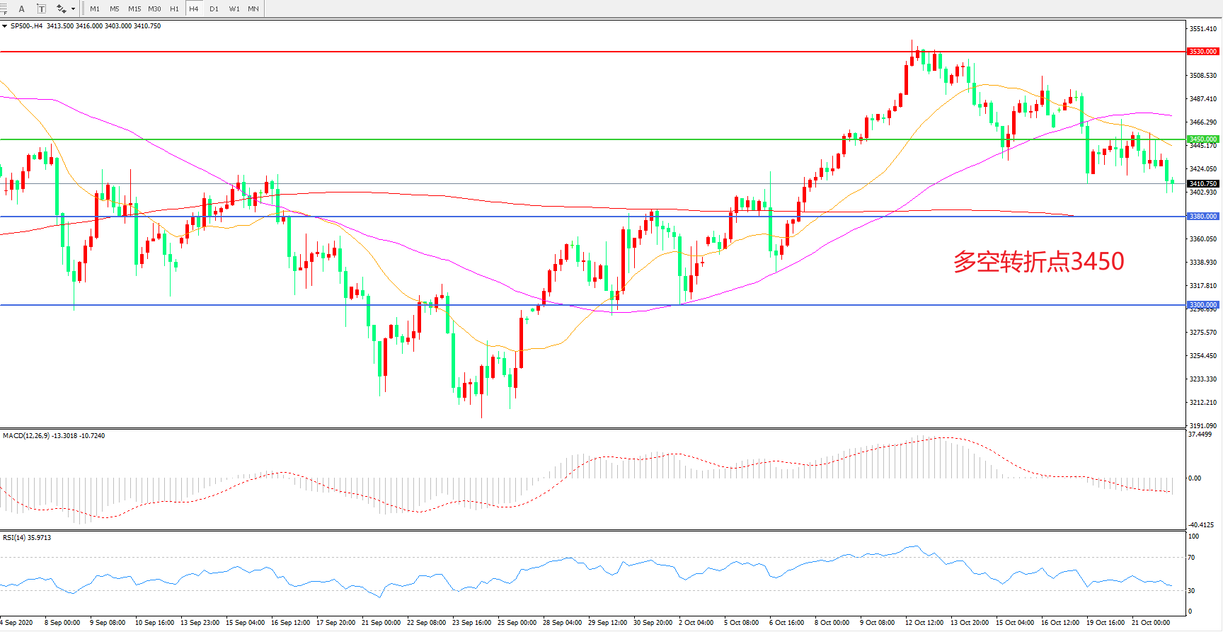 多空转折点:3450.00