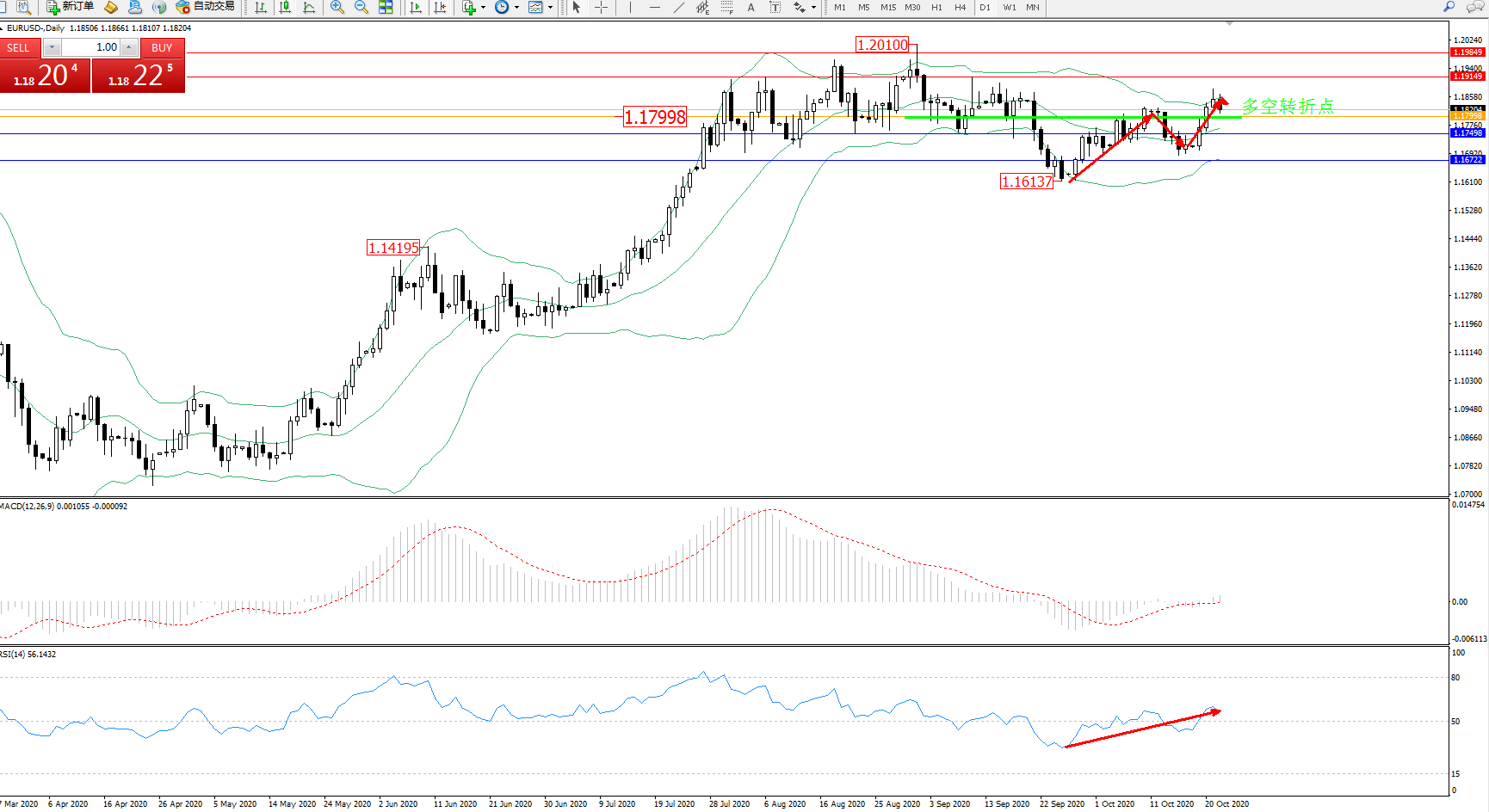 交易策略:1.17998上方看涨,目标1.19149、1.19849